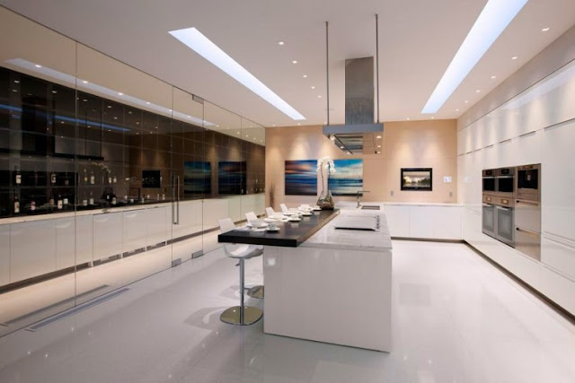 Through the use of massive structural steel beams, the home is able to appear weightless as it hovers above an expansive lawn. No expense has been spared during the six years that it took to complete this groundbreaking structure. All of the large glass panels are Star Fire glass, an incredibly clear glass usually reserved for jewelry displays. It s kitchen and baths are by such famous names as Varena, Poliform and Antonio Lupi. In each category the best and most exciting products from around the world were sourced to make this home flawless in each category. The home has five bedrooms, five and a half baths, grand hallway and large wine room. The glass pavilion includes an art gallery where the owner currently displays their vintage car collection. The space is so generous that it is capable of holding up to 32 cars within its walnut lined walls.
